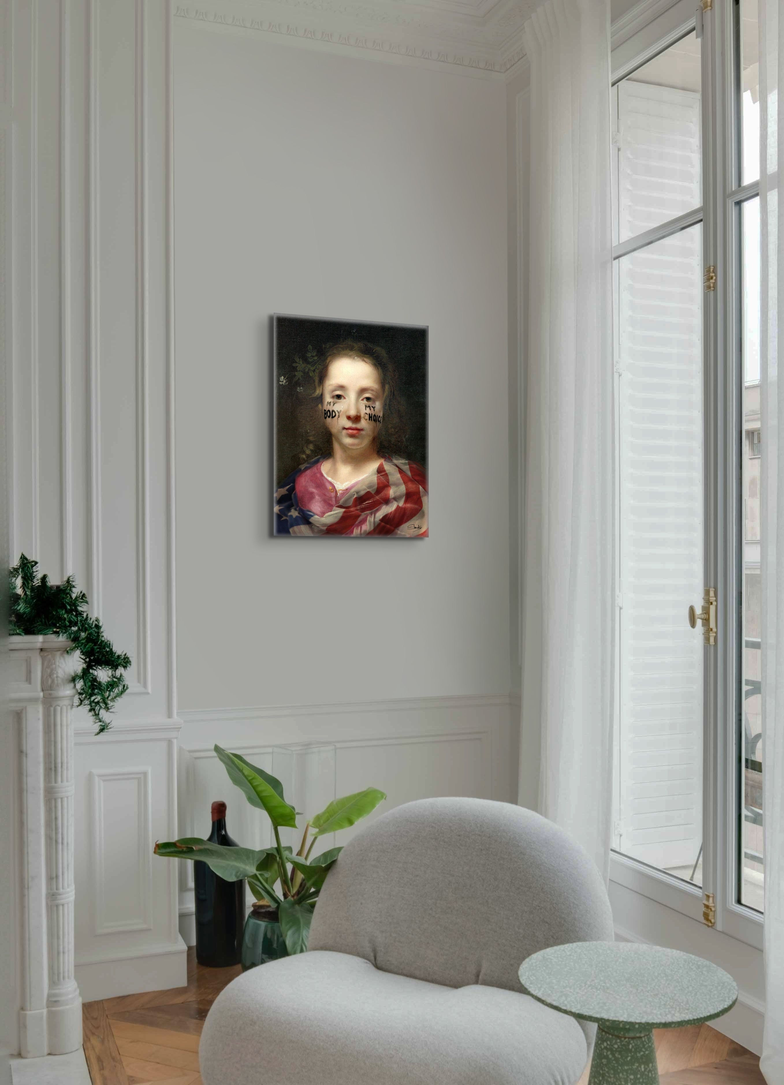 This work is part of the series The Neo Urban Collection Classic, a selection of pieces in which the artist has merged classical works of art with contemporary art techniques. In doing so, Slasky digitally transports the art that they recognise as holding contemporary importance. He alters original works of art to sit within contemporary social and artistic environments. Fusing urban influences and classic contemporary pop art, Slasky represents the icons of this century and significant moments in history. The works within this series have an immediate sense of familiarity injected with richness and modernity. Details are pushed front and centre into his canvases, using contrasting colour techniques, textured backgrounds, and silkscreen prints to create the same subject in various shapes, separating them from their traditional backdrops.