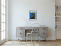 Frame: Artwork will be framed with a square profile hand-crafted solid wood frame coated with black lacquer at 20mm width, 22mm depth and internal depth of 18mm. Our frames make use of the highest quality materials from sustainable sources. Put together by Fine Art Guild-commended framers, the print is protected with sealed brown taped backs and a crystal-clear acrylic glazing. Arrive ready to hang. Mounted on 3.5mm acid-free foam board. Measuring 35.7 x 27.3cm including frame.