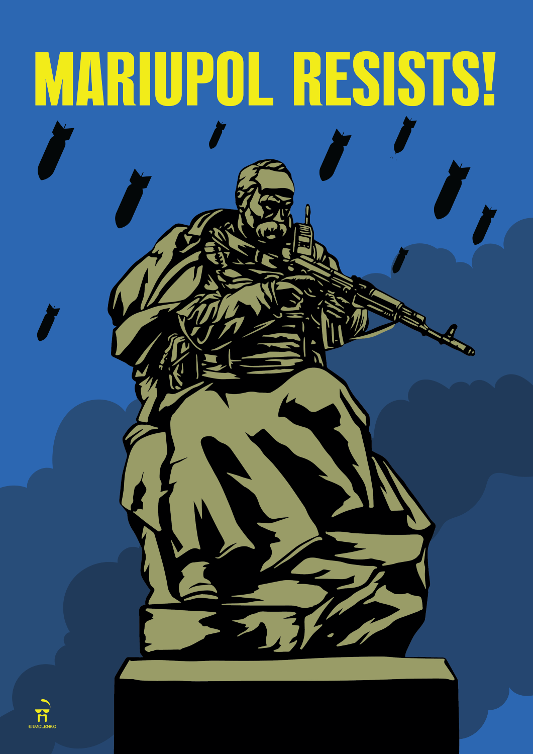 Since the start of Russian attacks, Yermolenko has been in Kyiv amongst the destruction. Their situation has not stopped their creativity, however. Yermolenko has been producing and sharing new visuals at a significant rate; in some cases posting six new works on social media in one day.