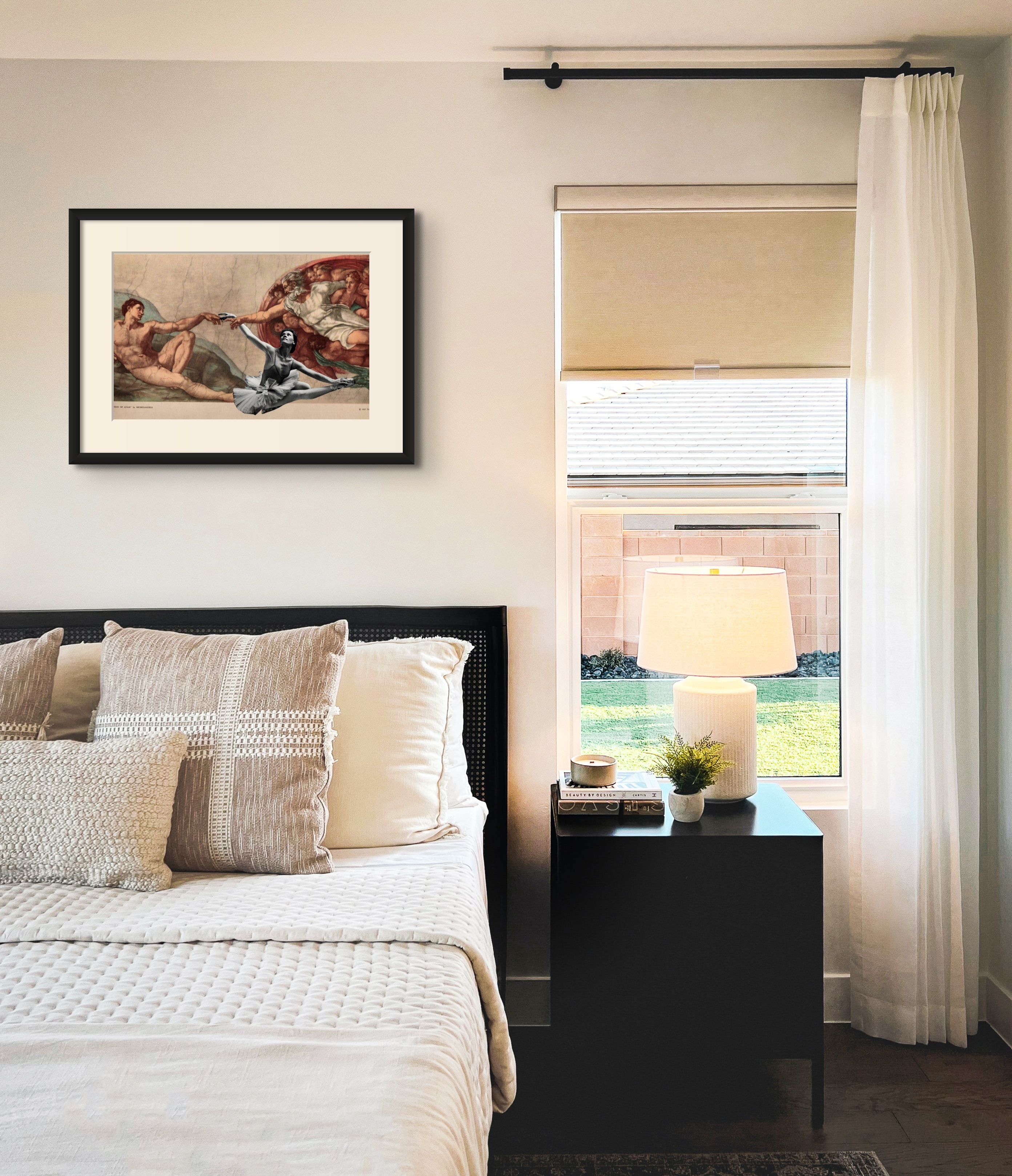 Stevenson takes a Renaissance artwork, The Creation of Adam by Michelangelo, and inserts addition into its narrative. Stevenson explores the necessity of the feminine within creation; questioning the Christian notion of what the story of Creation actually encompasses. The works, therefore, highlights a need for contemporary questioning on historical assumptions and beliefs, in order to reach true equity on a variety of bases.