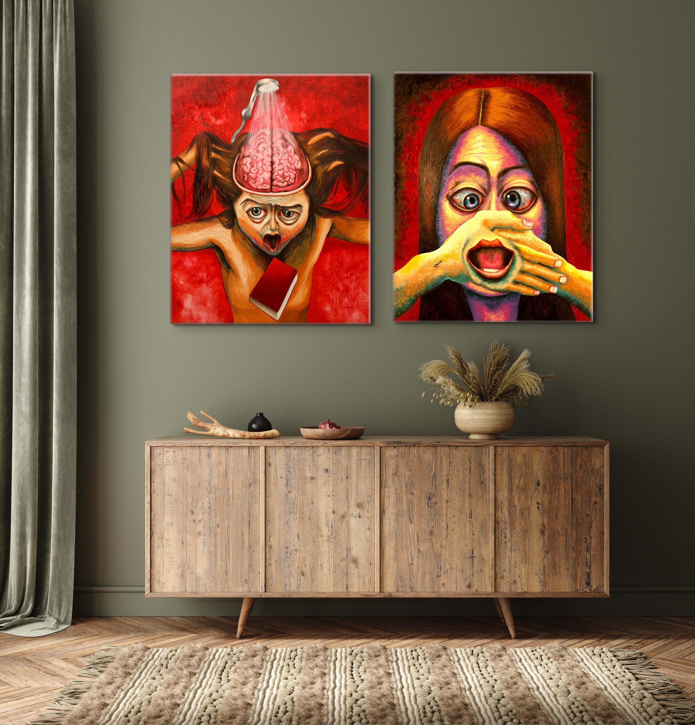 Born into working-class families, Lumli Lumlong studied together in France for 5 years with very limited financial means. They studied Fine Arts in École Nationale Supérieure des Beaux-Arts de Paris. Most of their artwork, which have been exhibited and collected by individuals in Hong Kong, Paris, London, Sydney, New York, Dublin and Prague, is mostly oil-painting in a grotesque style with a shared aim, revealing social realities. They have published their collection of artwork entitled “Liberarts” and “The Hong Kong Metamorphosis”. Under the rule of China, they were repeatedly criticized by the pro-Chinese Communist Party media for allegedly violating the National Security Law and using art to promote Hong Kong independence. “Liberarts” was then listed as a banned book. In 2021, they fled Hong Kong to the UK. Despite being suppressed, the couple still hope to use their works to contribute to their beloved hometown, Hong Kong.
