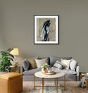 Frame: Artwork will be framed with a square profile hand-crafted solid wood frame coated with black lacquer at 20mm width, 22mm depth and internal depth of 18mm. Our frames make use of the highest quality materials from sustainable sources. Put together by Fine Art Guild-commended framers, the print is protected with sealed brown taped backs and a crystal-clear acrylic glazing. Arrive ready to hang. Mounted on 65mm acid-free foam board. Measuring 88 x 75.5 cm including frame.
