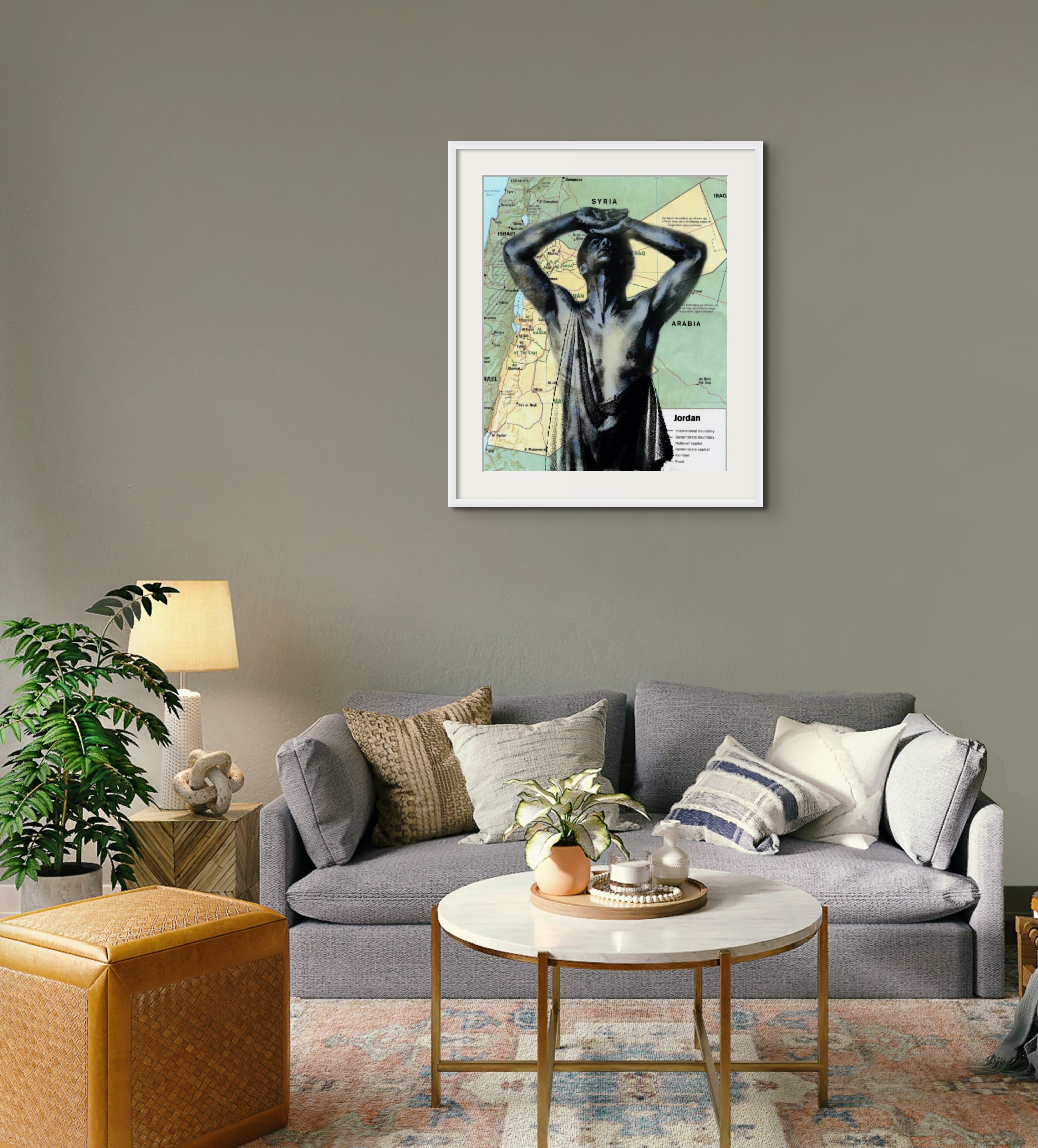 Frame: Artwork will be framed with a square profile hand-crafted solid wood frame coated with black lacquer at 20mm width, 22mm depth and internal depth of 18mm. Our frames make use of the highest quality materials from sustainable sources. Put together by Fine Art Guild-commended framers, the print is protected with sealed brown taped backs and a crystal-clear acrylic glazing. Arrive ready to hang. Mounted on 65mm acid-free foam board. Measuring 88 x 75.5 cm including frame.