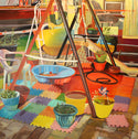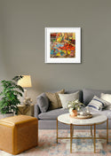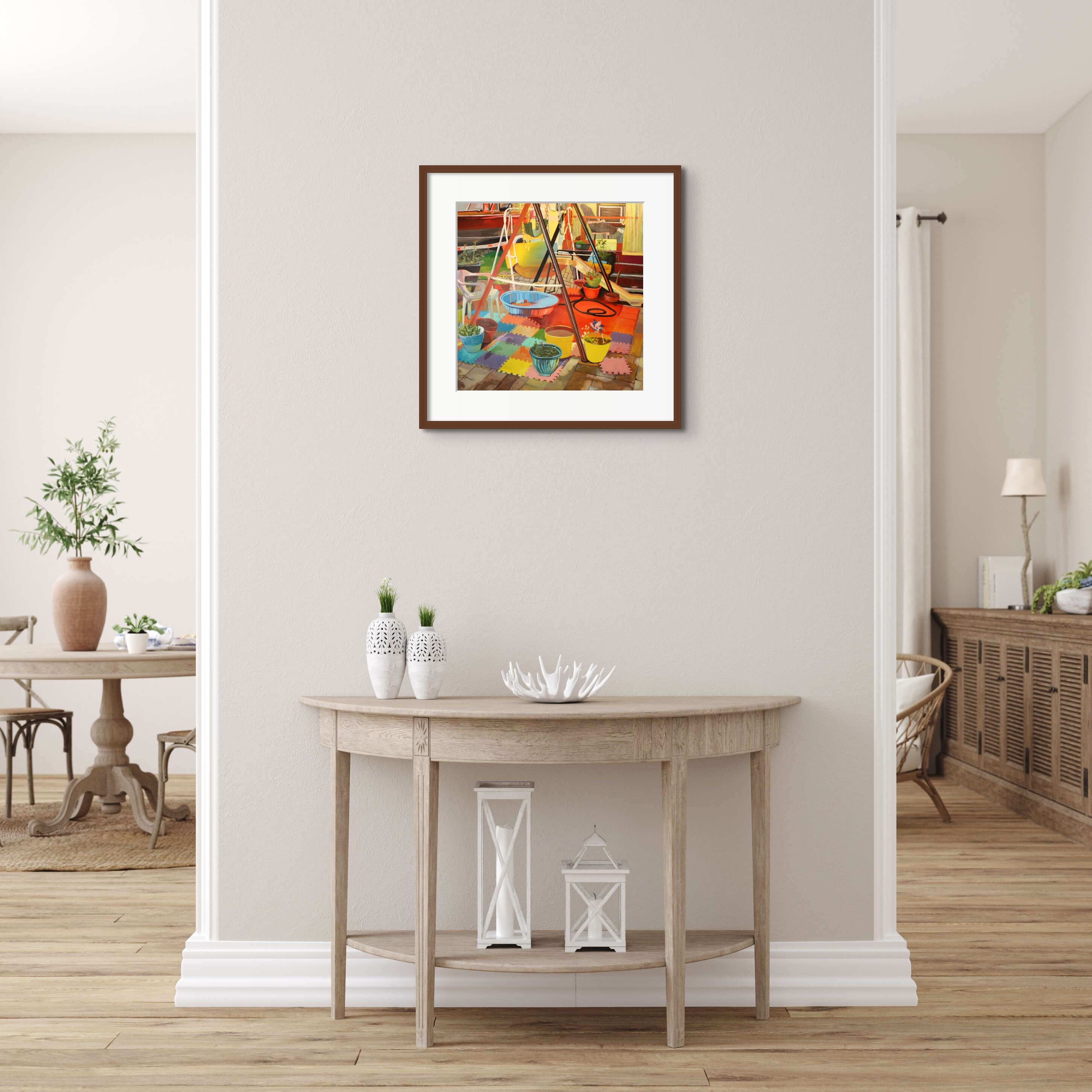 Power Porch meets the audience with eerie intensity as the ground beneath the swing set and porch glows a warm scarlet red. The large canvas is painted with vibrant colours and sweeping strokes, as if stepping into a moment of déjà vu. The scenario is curious, yet private and unassuming. The issue of domestic displacement and disorder comes to mind, or maybe it’s the passionate and fierce energy of an active family. Ultimately, this porch represents the forces, good and bad, rooted among the spaces around us.
