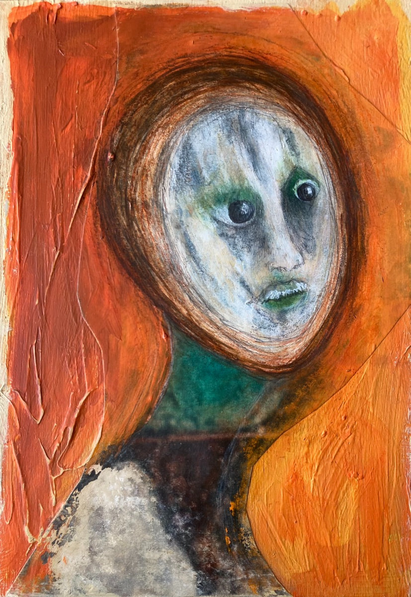 Mariken Heijwegen began a career in fashion, studying it in the Netherlands, but transferred their skills into the fine art world. Creating works that act as a depiction of the inner mind, Heijwegen seeks to teach students to reach their own feelings through artistic creation. The artist creates self-portraits as a translations of their own mental health journey. During a dark and mentally tough experience, Heijwegen produced a self-portrait every day to reflect the feelings that emerged from panic attacks, fear, anxiety and insecurities. They argue that the painting of these visuals is what saved their mental health; allowing for a solution of acceptance and understanding. With the aim to normalise discussions on mental health, Heijwegen sees strength in vulnerability and important visibility within chaos.