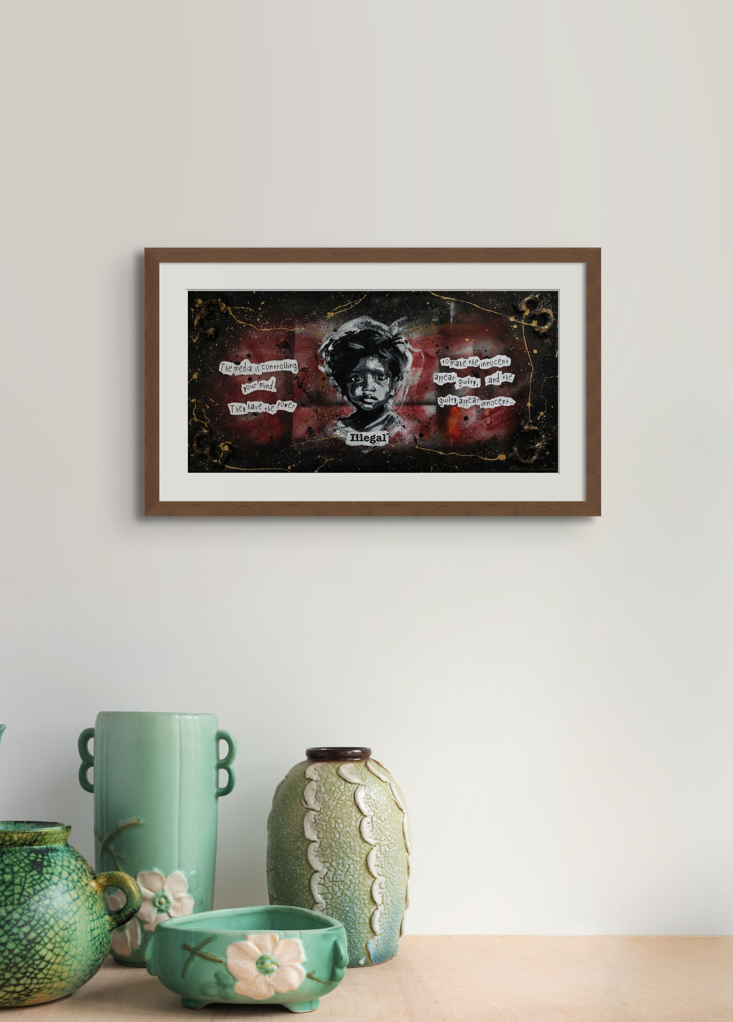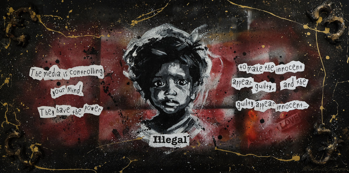 Teague accompanies her piece with the text: "Seeking asylum is a human right - Article 14: “Right to Asylum” Universal Declaration of Human rights. This means everyone should be allowed to enter another country to seek asylum." This artwork challenges us to not lose touch of our humanity and remember to always question the realities (or media narratives) that are presented to us.