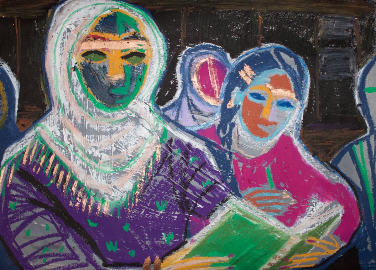 For this series of mixed media artworks on paper and canvas, and Stranack creates images that respond to the positive outcomes of access to education. Uplifting colours that reflect the cultural history and fashion of the country, while acting as a source for hope, peace and prosperity.