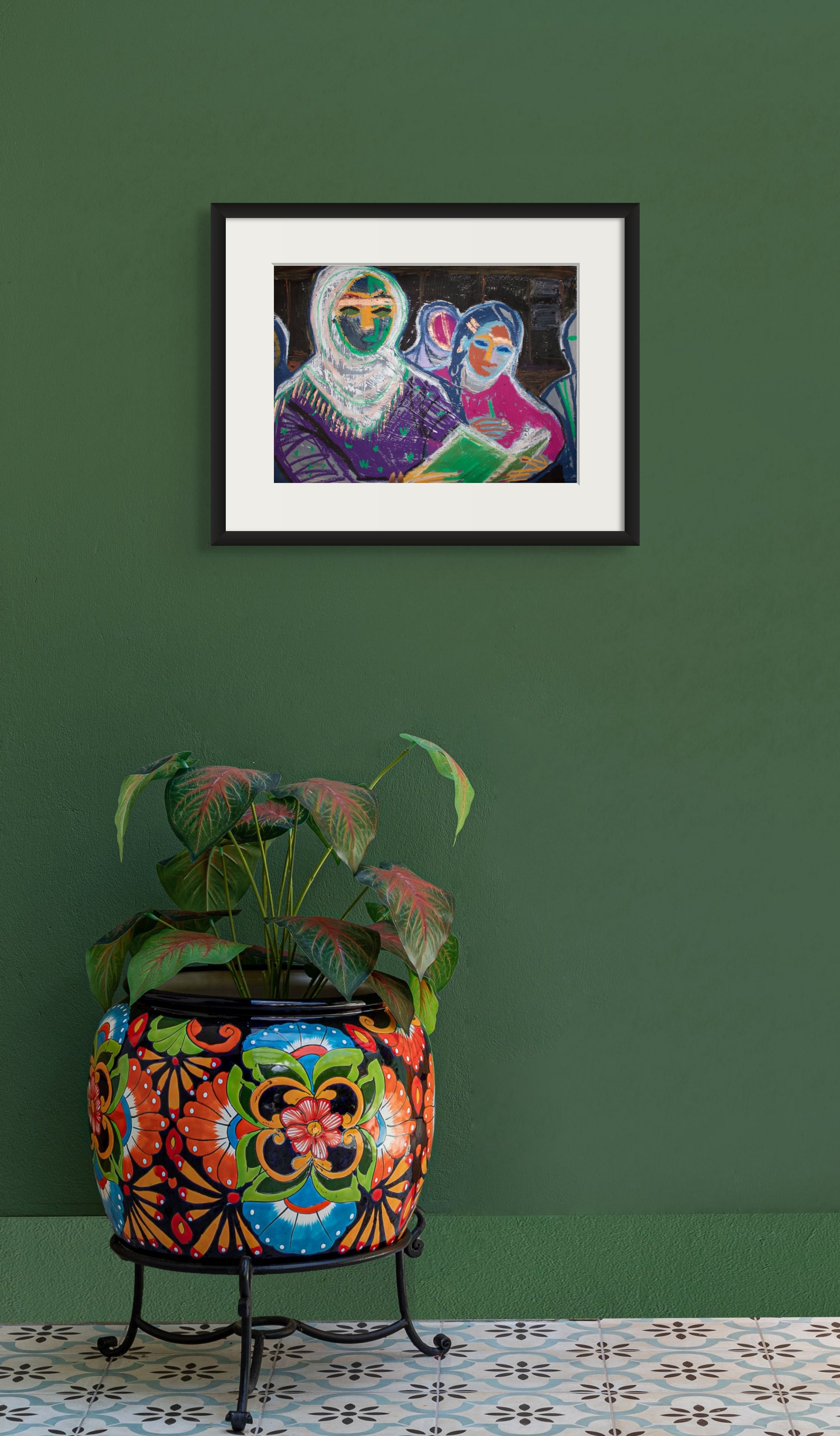 Based on our agreement with the artist, 15% of the pre-VAT price excluding frames will be donated to support Women for Refugee Women.