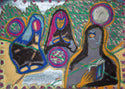 Stranack invented her "female heroines" as a means of exploring the above concepts; appearing half visible beneath a sheer fabric, eyes staring intently through a traditional batoola mask, or with lids delicately closed, lost deep in contemplation.