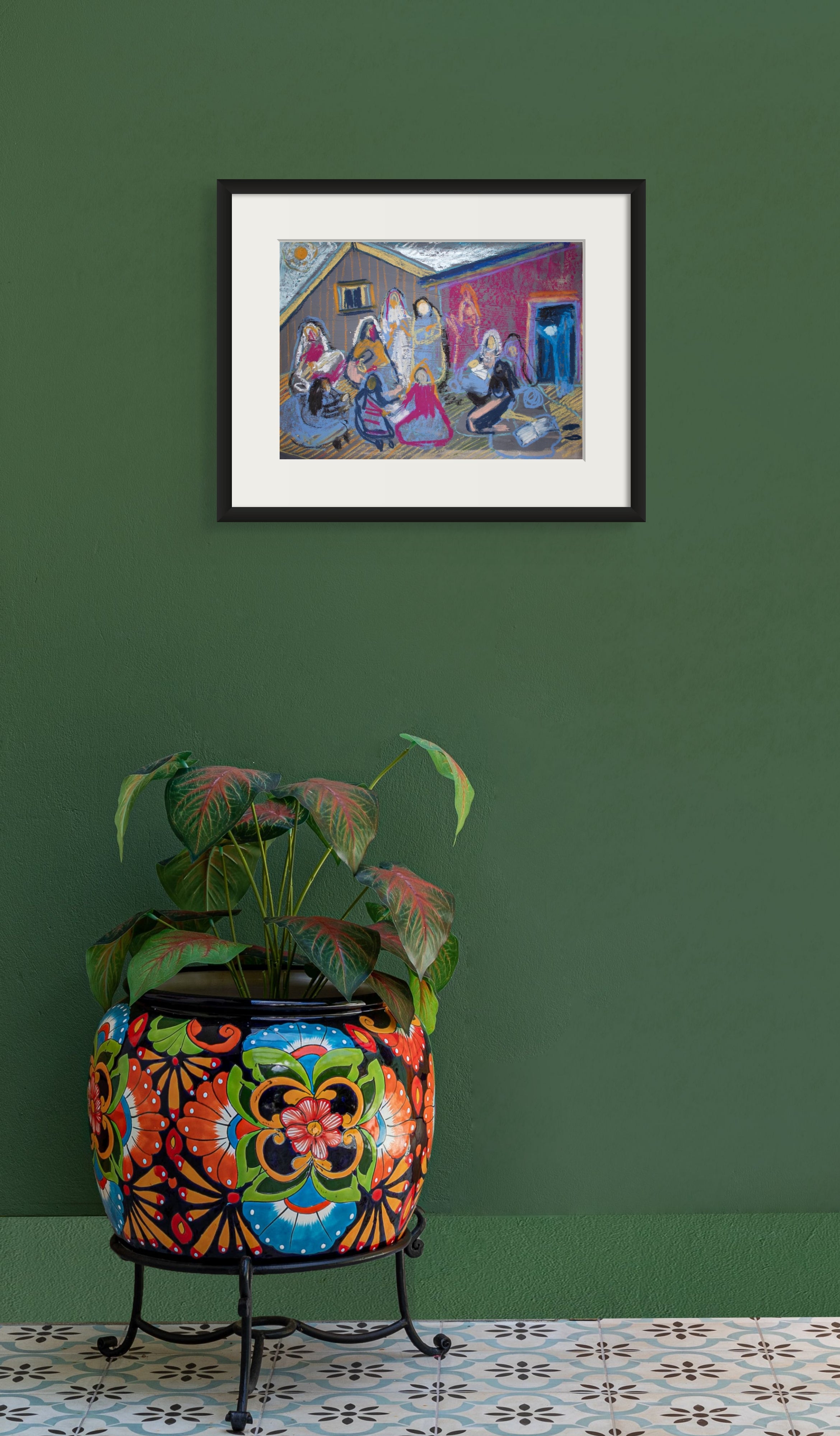 Based on our agreement with the artist, 15% of the pre-VAT price excluding frames will be donated to support Women for Refugee Women.