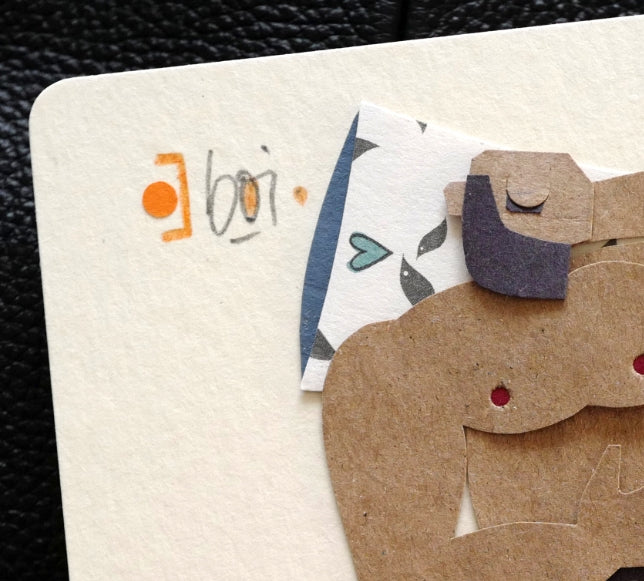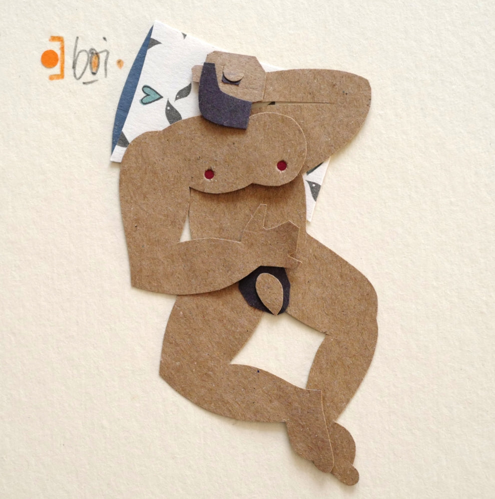 Most of Juan's paper men are athletic and well hung, as what the gay men want to see. Big and flashy things are also easier to cut out of paper. But this shape shows what Juan really likes: the real man with normal size and a few pounds overweight.