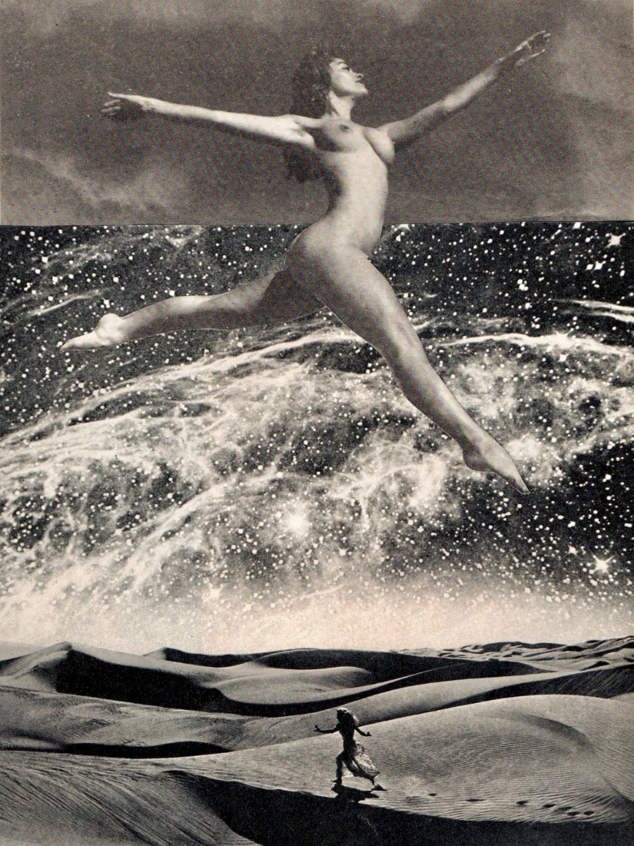 Deborah Stevenson accompanies Higher Power with the text: "My intent in much of my work is to lift women up and out of stereotypical moulds that shrink them, shame them, and separate them from their own spirits. The barren desert is a place from which to flee into a universe of boundless energy, joy and self-empowerment."